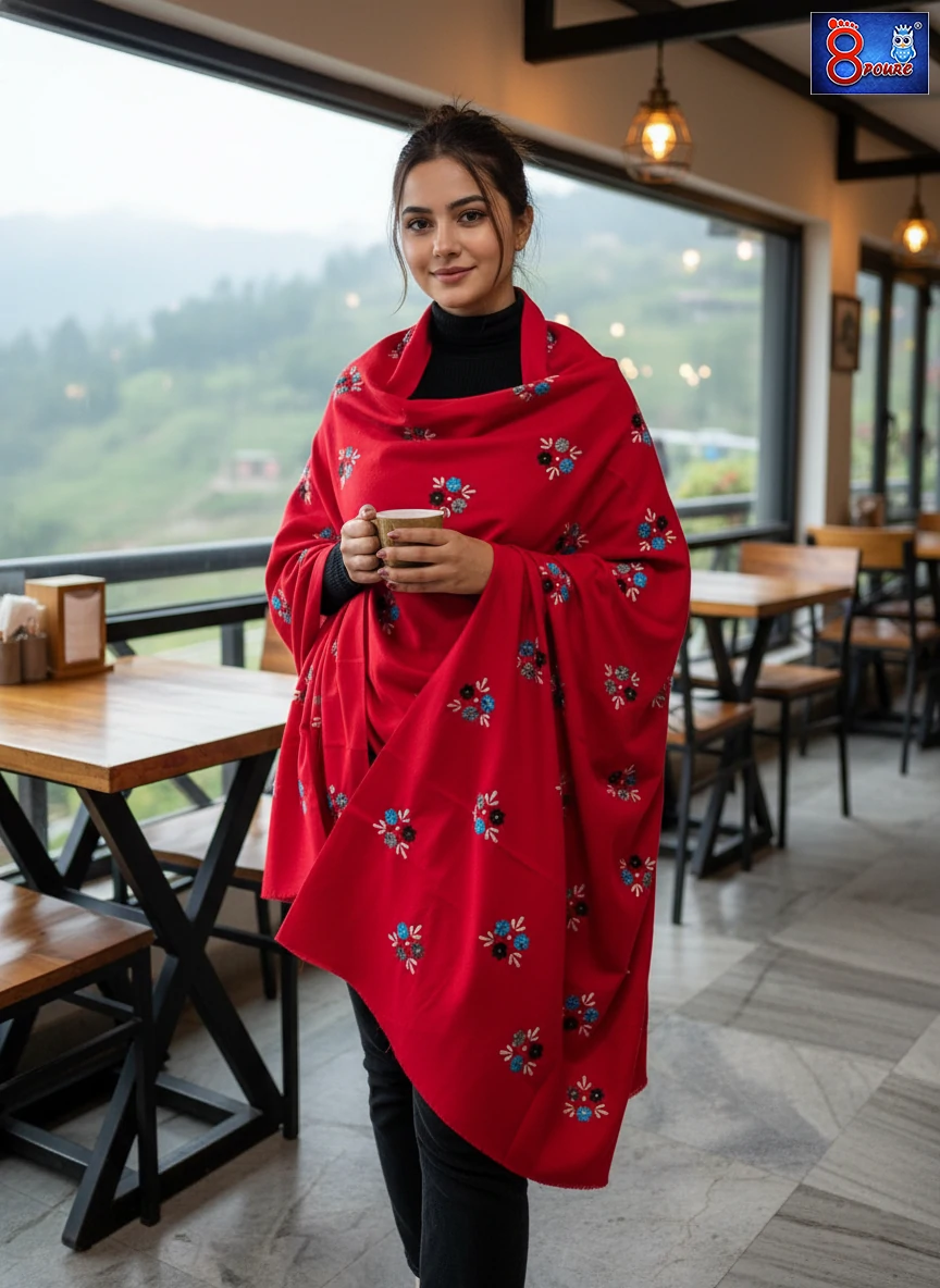 This season, wrap yourself in elegance with our exclusive hand-embroidered shawl — a masterpiece crafted only by 8Poure. Each piece is lovingly detailed with fine traditional embroidery, giving it a luxurious touch that celebrates our rich heritage.