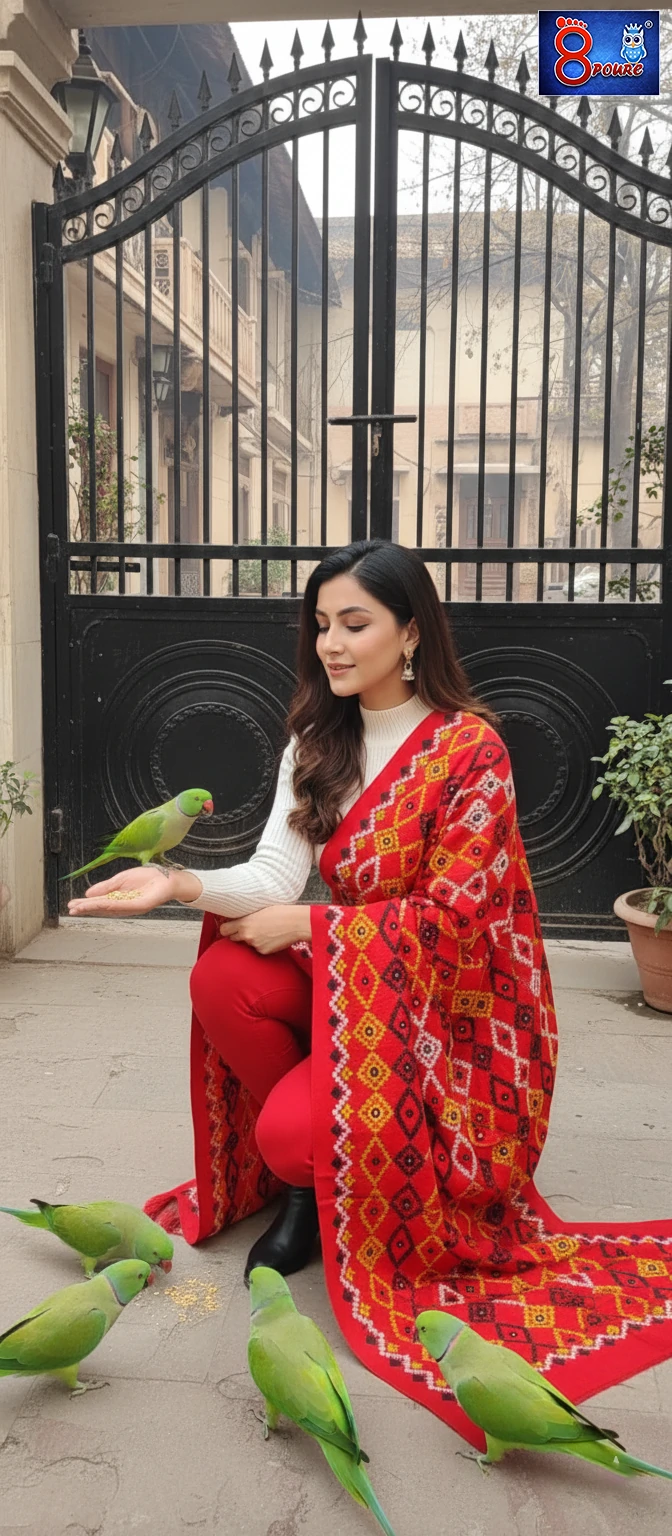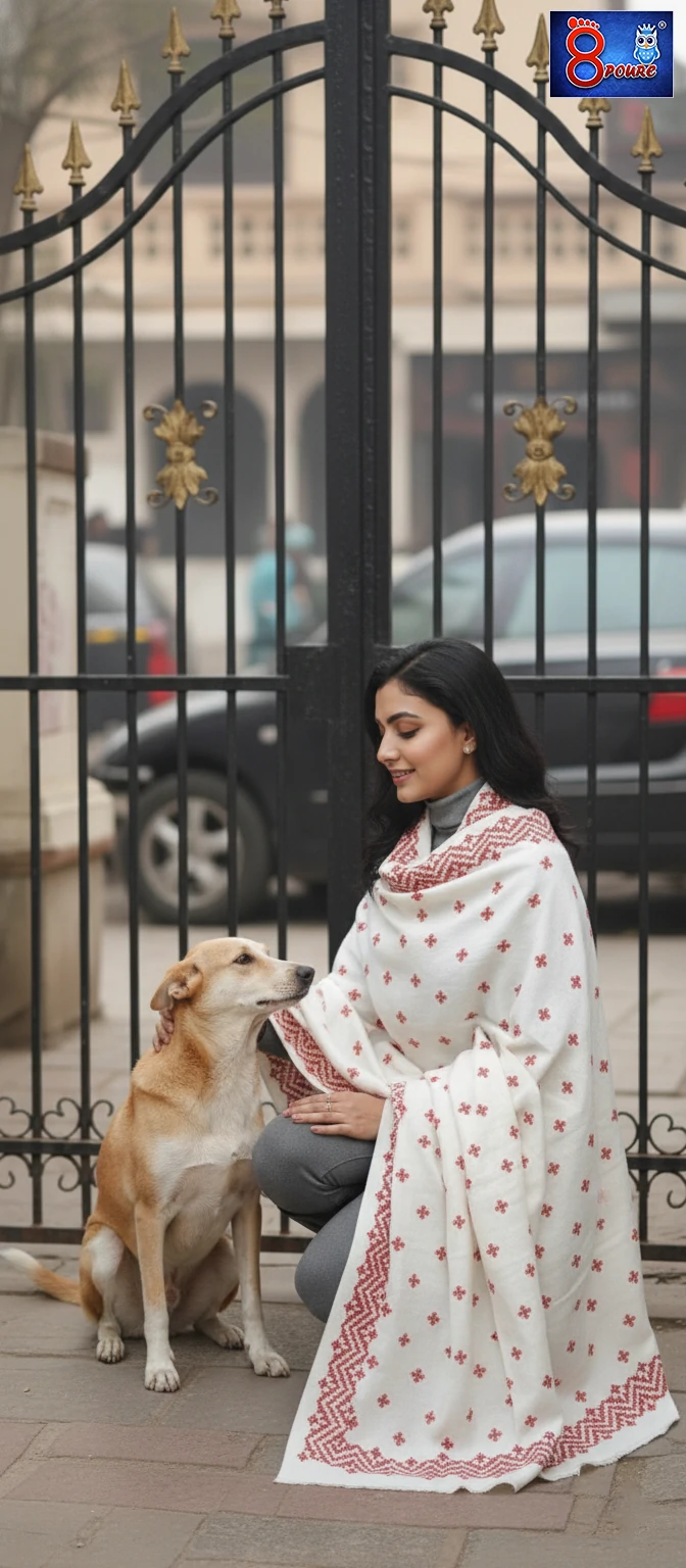 Designed in a larger, full-coverage size, it drapes beautifully — perfect for both everyday grace and special occasions. Soft, warm, and stunningly detailed, it’s more than a shawl — it’s a statement.